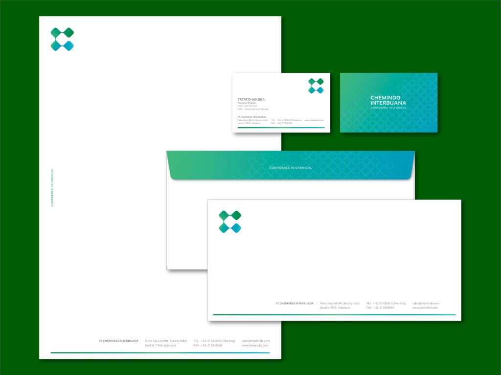 At 2014, PT Chemindo Interbuana, a chemical trading company based in Jakarta, hired us to rebrand their company. As a well-established company, they wanted a more fresh, sophisticated and modern look, leaving the old style they had before. The new look must also be in line with the new vision, mission and core values so that there is truly renewal from all sides of the company. Therefore, we work together to conduct surveys, interviews and research to get the latest insights from within and outside the company. The results of this process gave birth to a new vision, mission and core values which we then present in a new brand identity design.