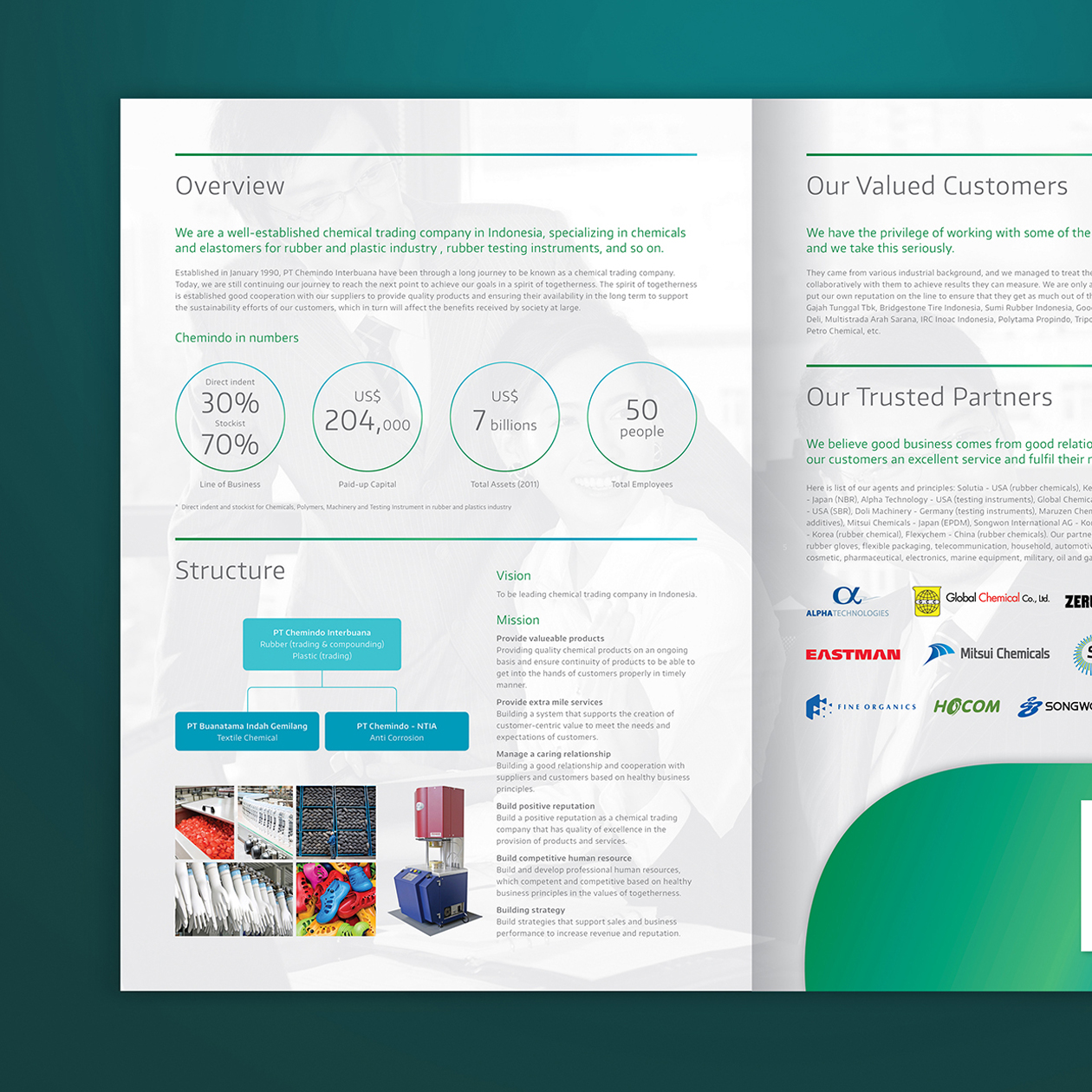 The company profile map design is a continuation of the rebranding process of PT Chemindo Interbuana. After years of using just a simple company profile, PT Chemindo Interbuana finally invited us to redesign their company profile.