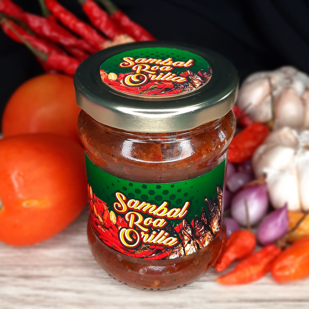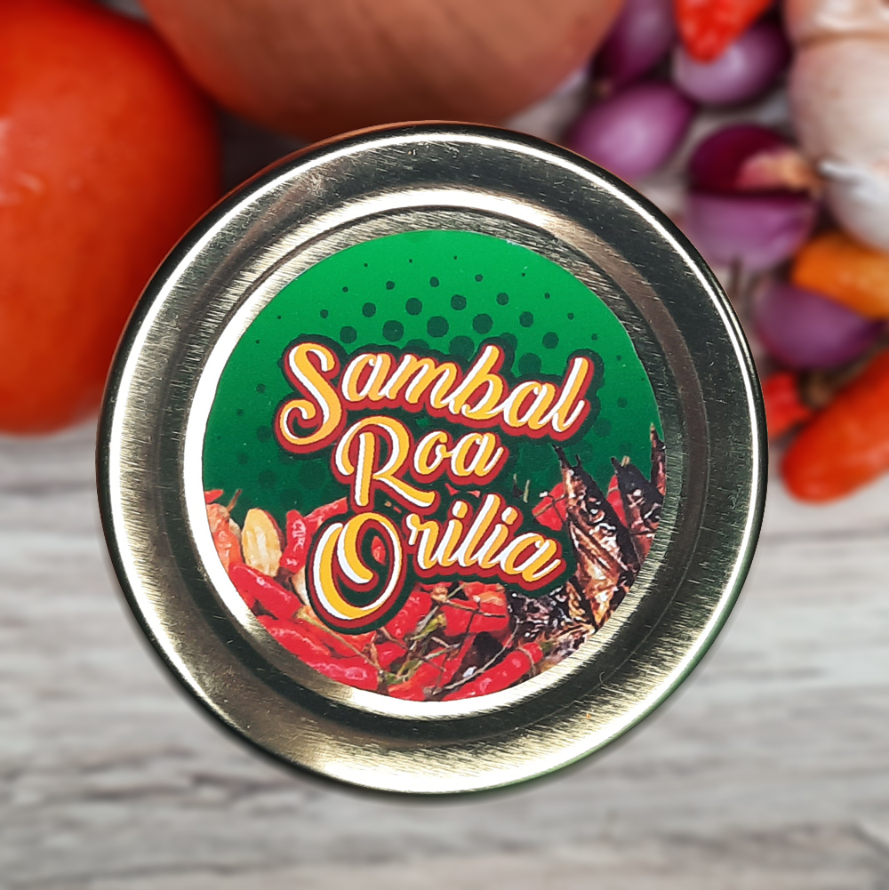 One of our support act is design for Sambal Roa Orilia. We made a logo and then gave the packaging label design for free. This chilli sauce mostly consists of chilli onion and roa fish. Roa is one of the typical smoked fish in Manado, Indonesia. We combined all of these images and give a contrasting green background to make it look fresh and attractive. As for the logo, yellow is an attractive colour to look at, against the background.